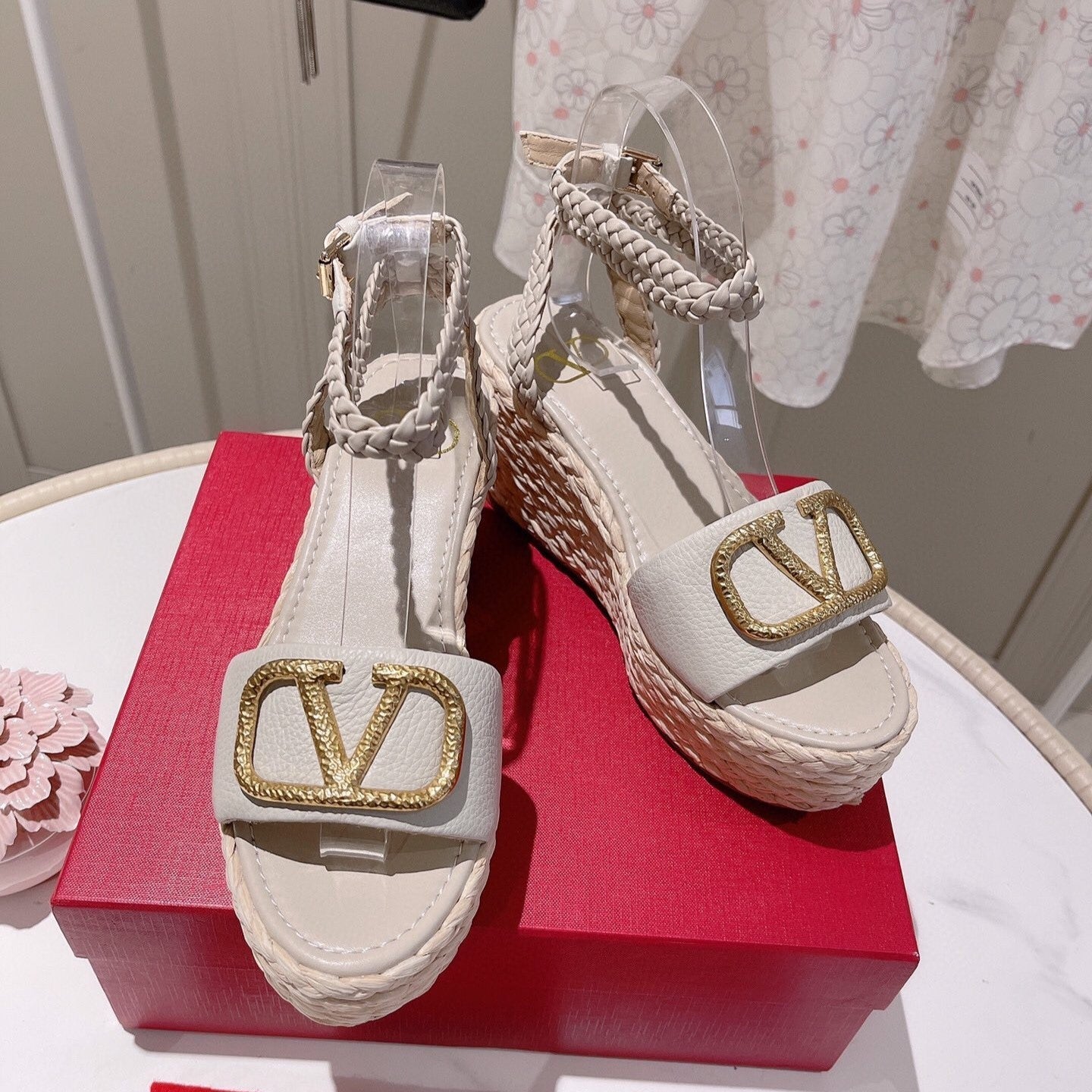 VLogo Signature Calfskin Wedge Sandal 90mm White