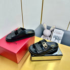 VT 25 Platform Sandals Black Slippers Cowhide 332069