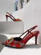 VT High Heeled Slingbacks Red Sheepskin 292816