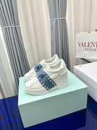 FLATFORM ROCKSTUD UNTITLED SNEAKER IN WHITE CALFSKIN MIX AEGEAN BLUE FABRIC