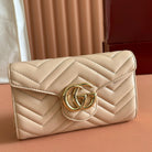Gucci Marmont Chain Wallet Beige Cowhide 254972