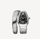 Bulgari Serpenti 35mm Tubogas Single Spiral Steel Diamonds Black Dial