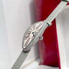 Vintage Baignoire 21mm Silver Diamond Case Grey Leather