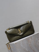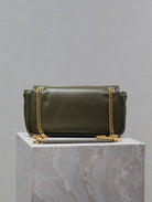 CALYPSO CHAIN BAG 26 IN ARMY GREEN SMOOTH LAMBSKIN