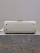 CASSANDRA MINI TOP HANDLE BAG 20 IN WHITE CANVAS AND LEATHER TRIM