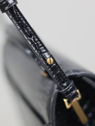 CASSANDRA TOP HANDLE BAG 24 IN BLACK CROCODILE-EMBOSSED GLOSSY CALFSKIN