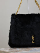 JAMIE 4.3 LARGE BAG 43 IN BLACK LAMB FUR GOLD HARDWARE