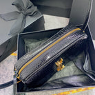 LOU CAMERA BAG 23 IN BLACK CROCODILE PATTERN CALFSKIN GOLD LOGO