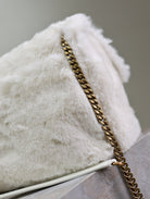 NIKI MEDIUM 28 IN WHITE RABBIT FUR GOLD HARDWARE