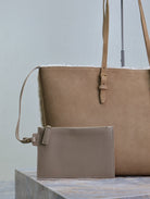 SHOPPING TOTE BAG 38 IN TAN BROWN SUEDE AND WHITE SHEARLING TRIM