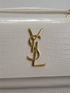SUNSET SMALL BAG 19 IN WHITE CROCODILE-EMBOSSED CALFSKIN GOLD HARDWARE