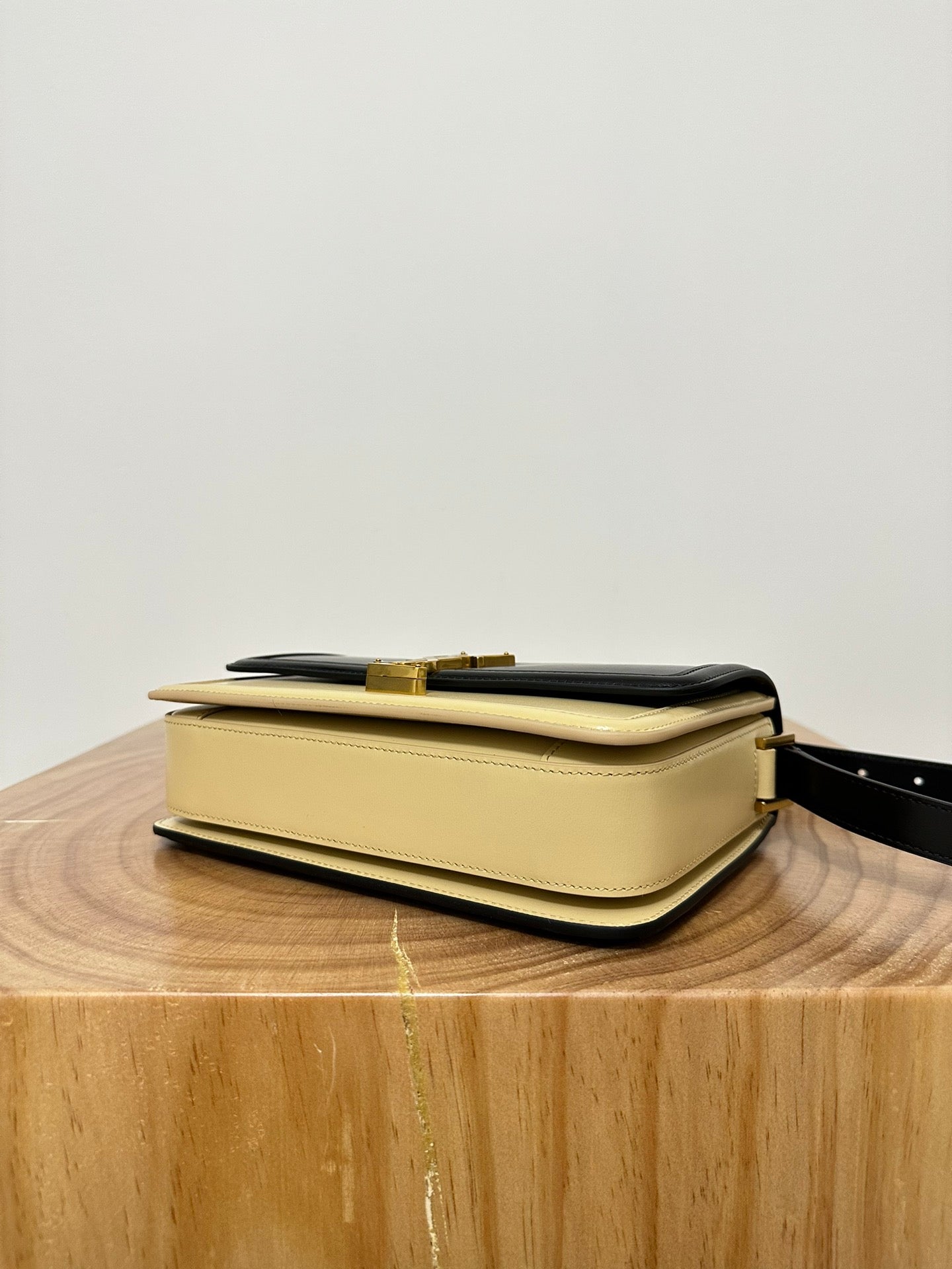 YSL Solferino Small Satchel Bag Black mix Beige Gold Calfskin 339470