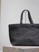 YSL TOTE BAG 50CM BLACK RAFFIA