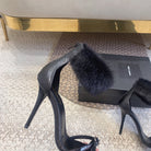HIGH HEEL SANDAL IN BLACK POLISHED CALFSKIN AND MINK FUR