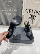 HIGH HEEL SANDALS IN BLACK GLOSSY CALFSKIN WTH STRAPS ATTACHED GEM