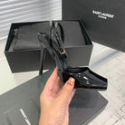 SL FISH MOUTH SANDAL PUMP BLACK POLISHED CALFSKIN