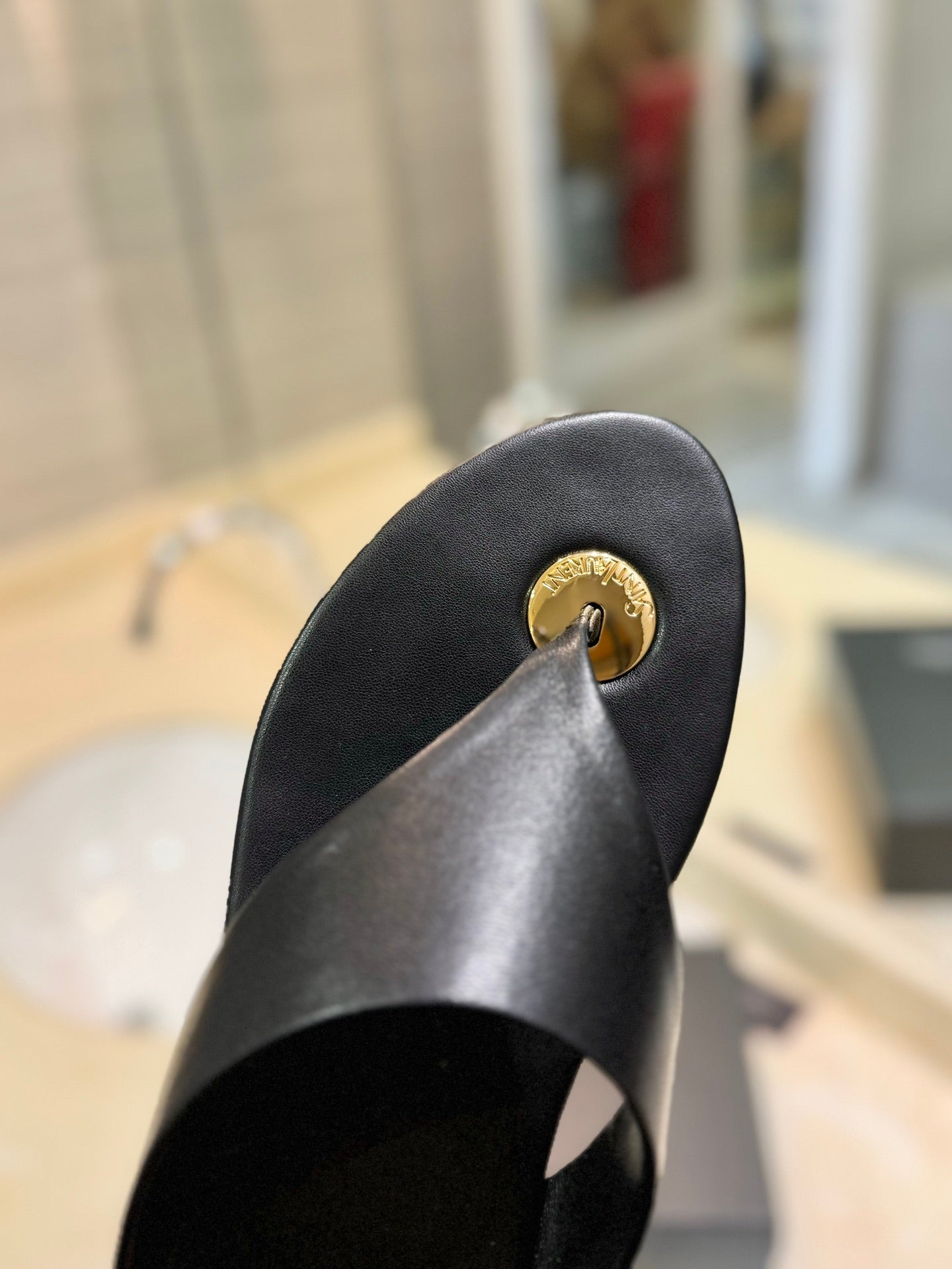 SL KOUROS THONG SANDALS BLACK CALFSKIN