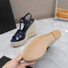 SL TRIBUTE WEDGE SANDALS NAVY POLISHED CALFSKIN