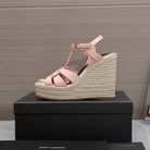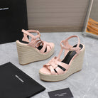 SL TRIBUTE WEDGE SANDALS PASTEL PINK POLISHED CALFSKIN