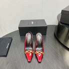 GOLD CHAIN ATTACHED HIGH SLINGBACK IN RED GLOSSY CALFSKIN