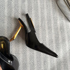 LEE SLINGBACK PUMPS 105 IN BLACK PATENT LEATHER GOLD HEEL