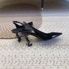 OPYUM BLACK HEEL SLINGBACK PUMPS IN BLACK GLOSSY CALFSKIN