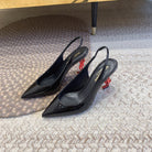 OPYUM RED HEEL SLINGBACK PUMPS IN BLACK GLOSSY CALFSKIN
