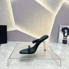 SL CRYSTAL BUCKLE HIGH HEELS BLACK SATIN