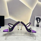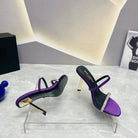 SL CRYSTAL THIN BELT HIGH HEELS VIOLET SATIN