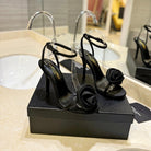 SL IVY FLORAL HEEL SANDALS BLACK SATIN