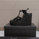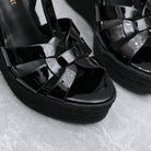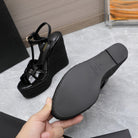 SL TRIBUTE WEDGE SANDALS BLACK POLISHED CALFSKIN