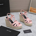 SL TRIBUTE WEDGE SANDALS PALE PINK CALFSKIN