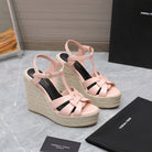 SL TRIBUTE WEDGE SANDALS PASTEL PINK POLISHED CALFSKIN