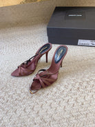 CROSS STRAP HIGH HEEL IN CHESTNUT SILK GOLD CHAIN
