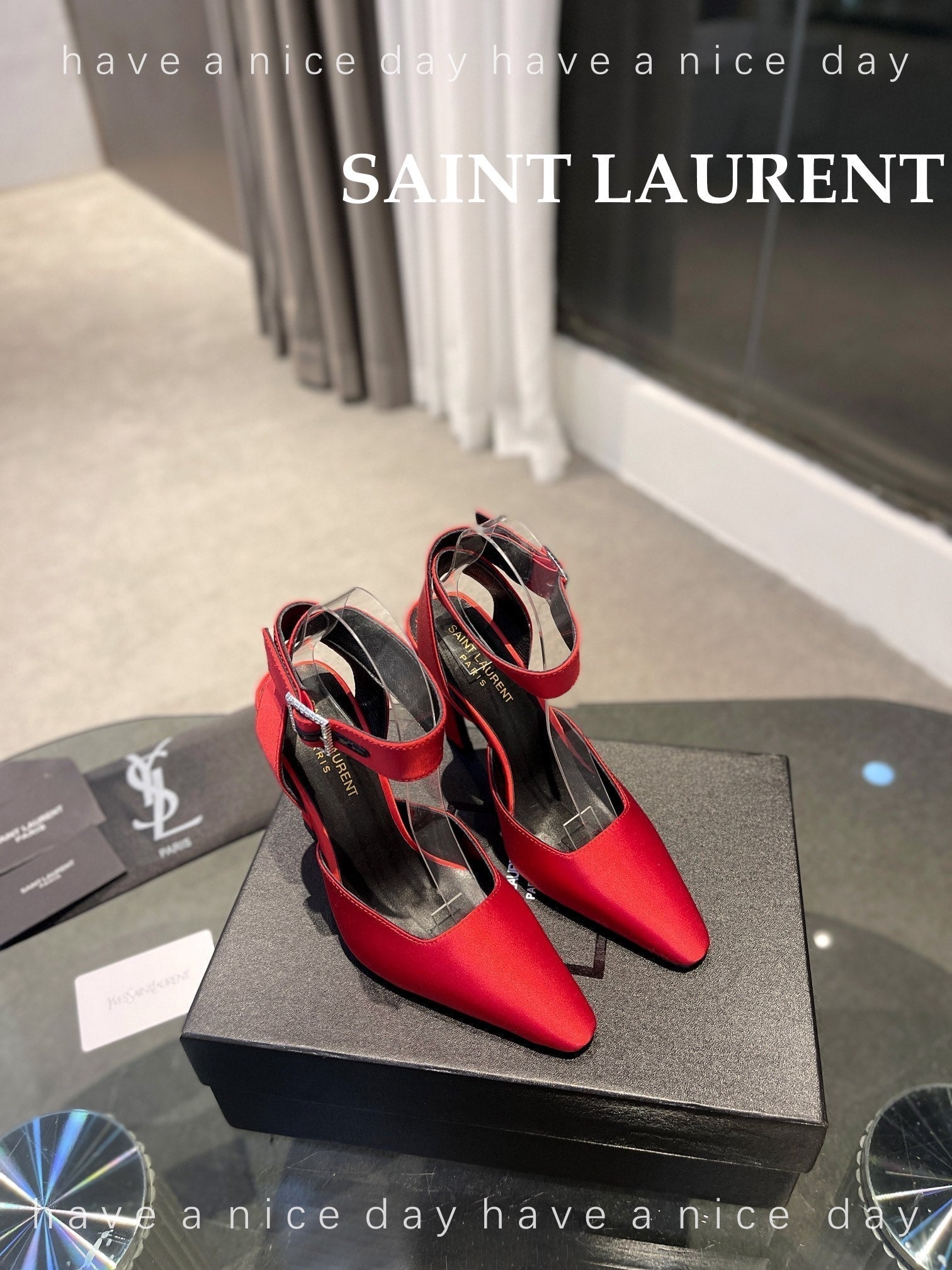 SL FANNY SLINGBACK PUMPS RED SATIN