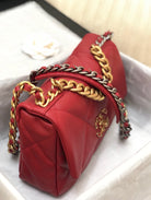 19 FLAP BAG 26 RED LAMBSKIN GOLD HARDWARE