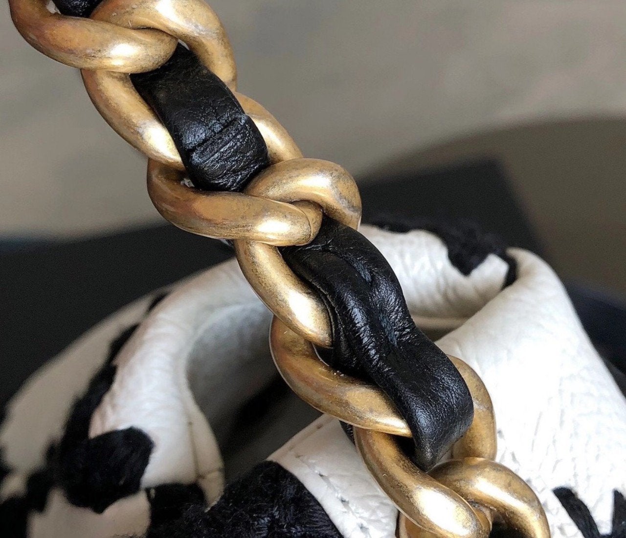 19 FLAP BAG 26 WHITE BLACK CALFSKIN
