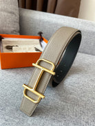 3.8CM BELT H REVERSIBLE BLACK GREY LEATHER