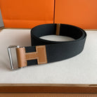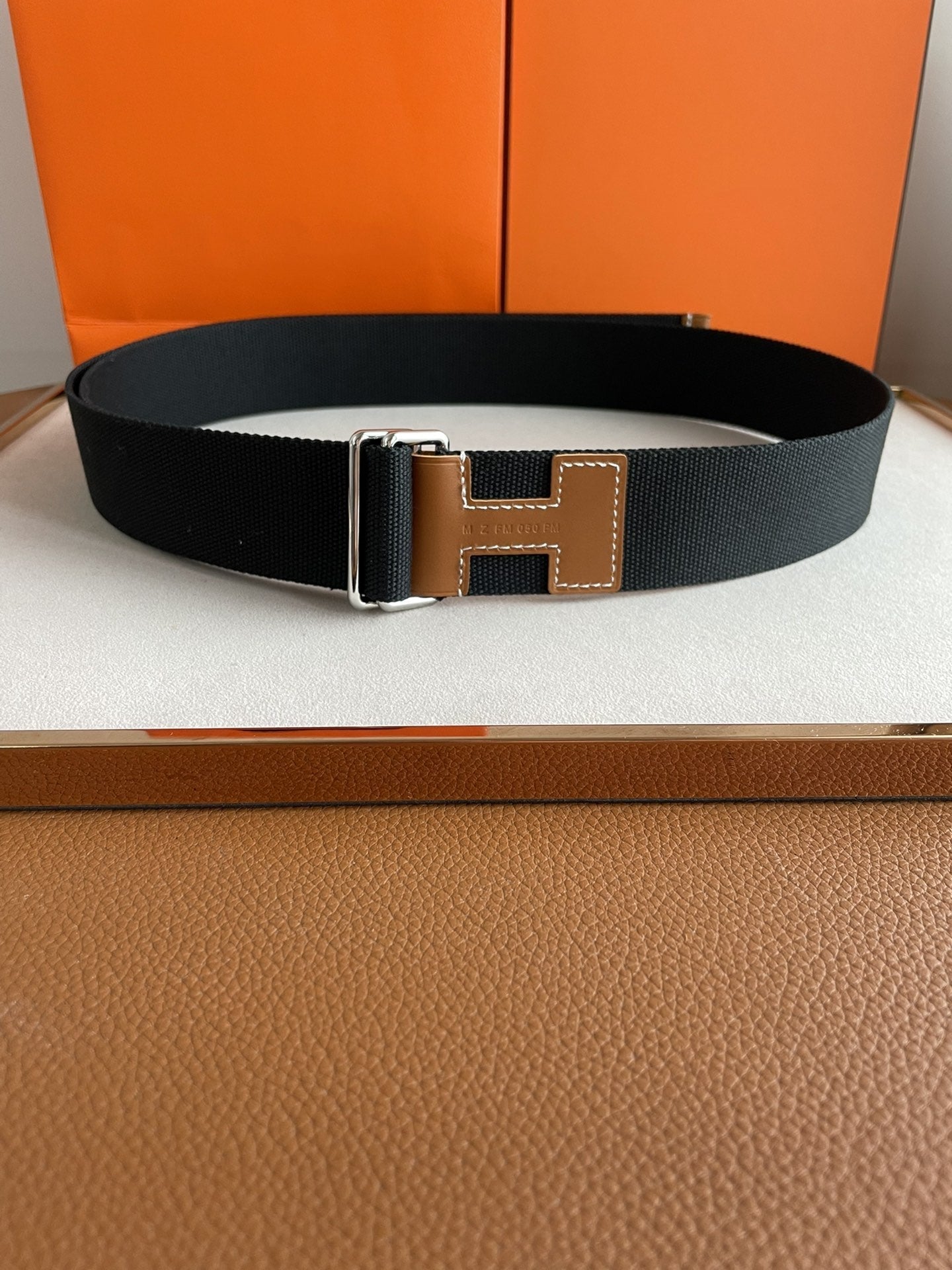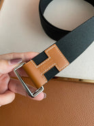 4.0CM BLACK TEXTILE BROWN LEATHER H BELT