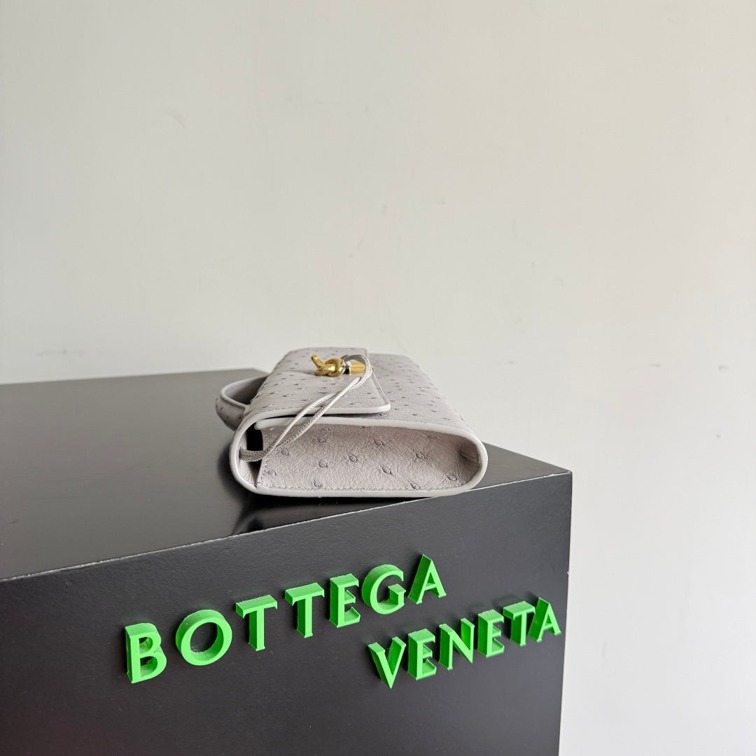 Bottega Veneta 2026 Andiamo Clutch 31cm Light Gray Ostrich Leather 136971