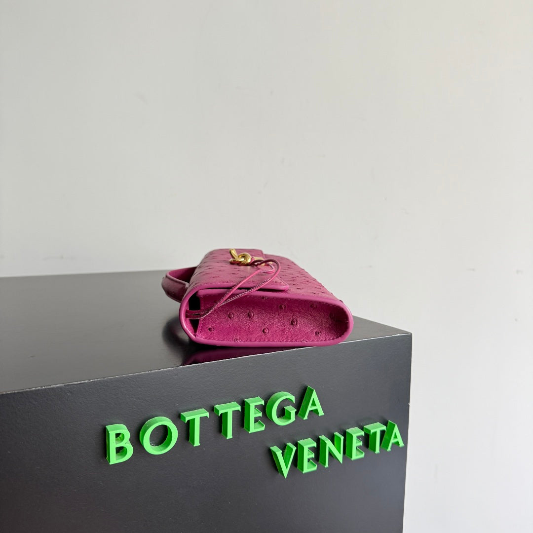 Bottega Veneta 2026 Andiamo Clutch 31cm Pink Ostrich Leather 136965