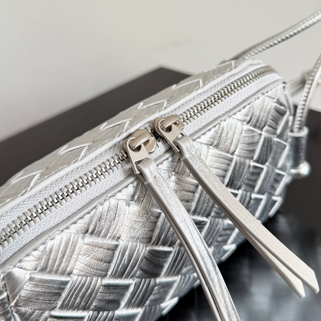 Bottega Veneta 2026 Concert Pouch Bag 18.5 Silver Intrecciato Leather 137078