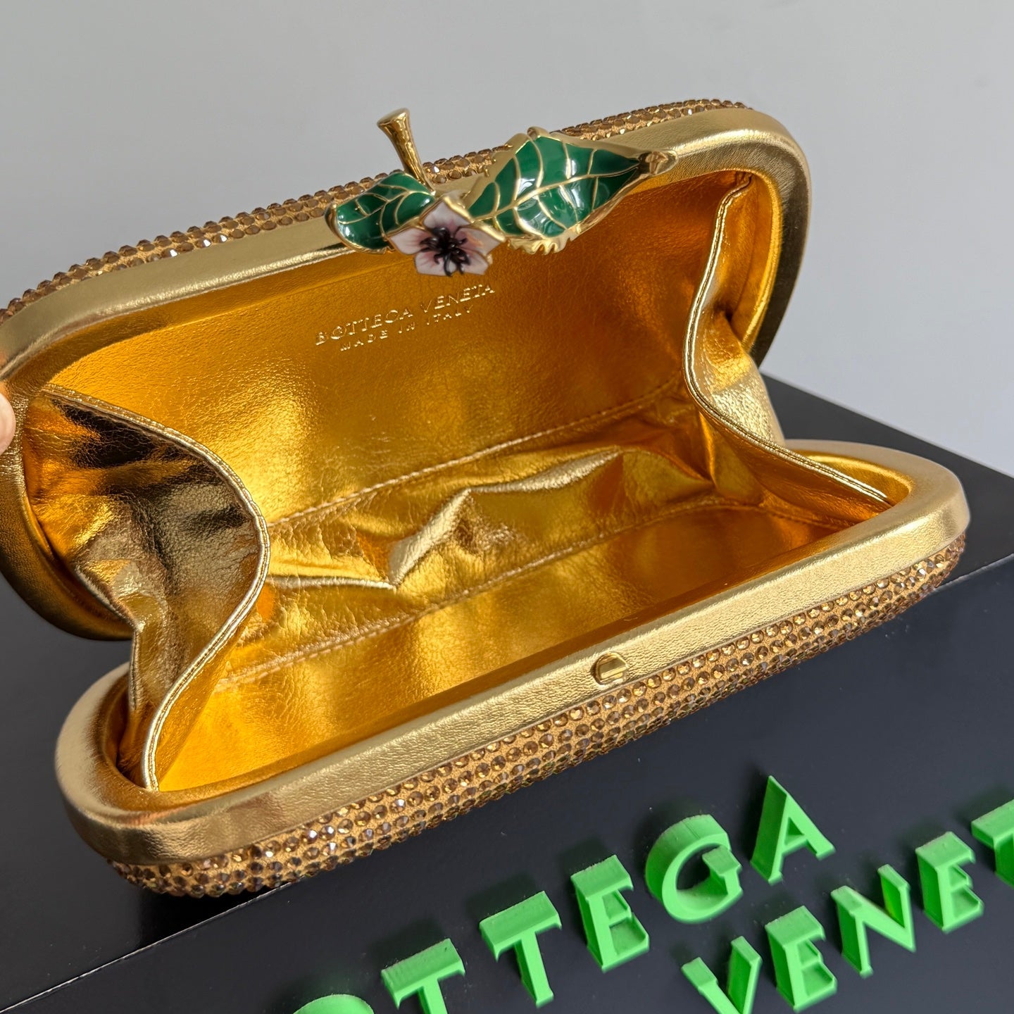 Bottega Veneta 2026 Knot Embellished Clutch 19cm Gold Crystal Leather Minaudière
