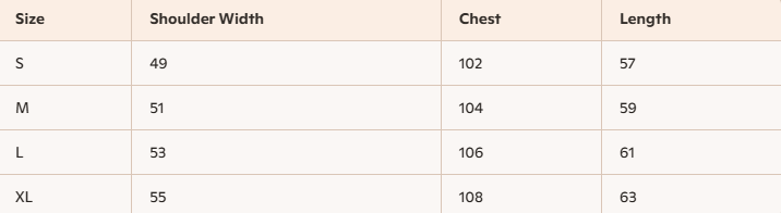 - For more information, please see the size guide below