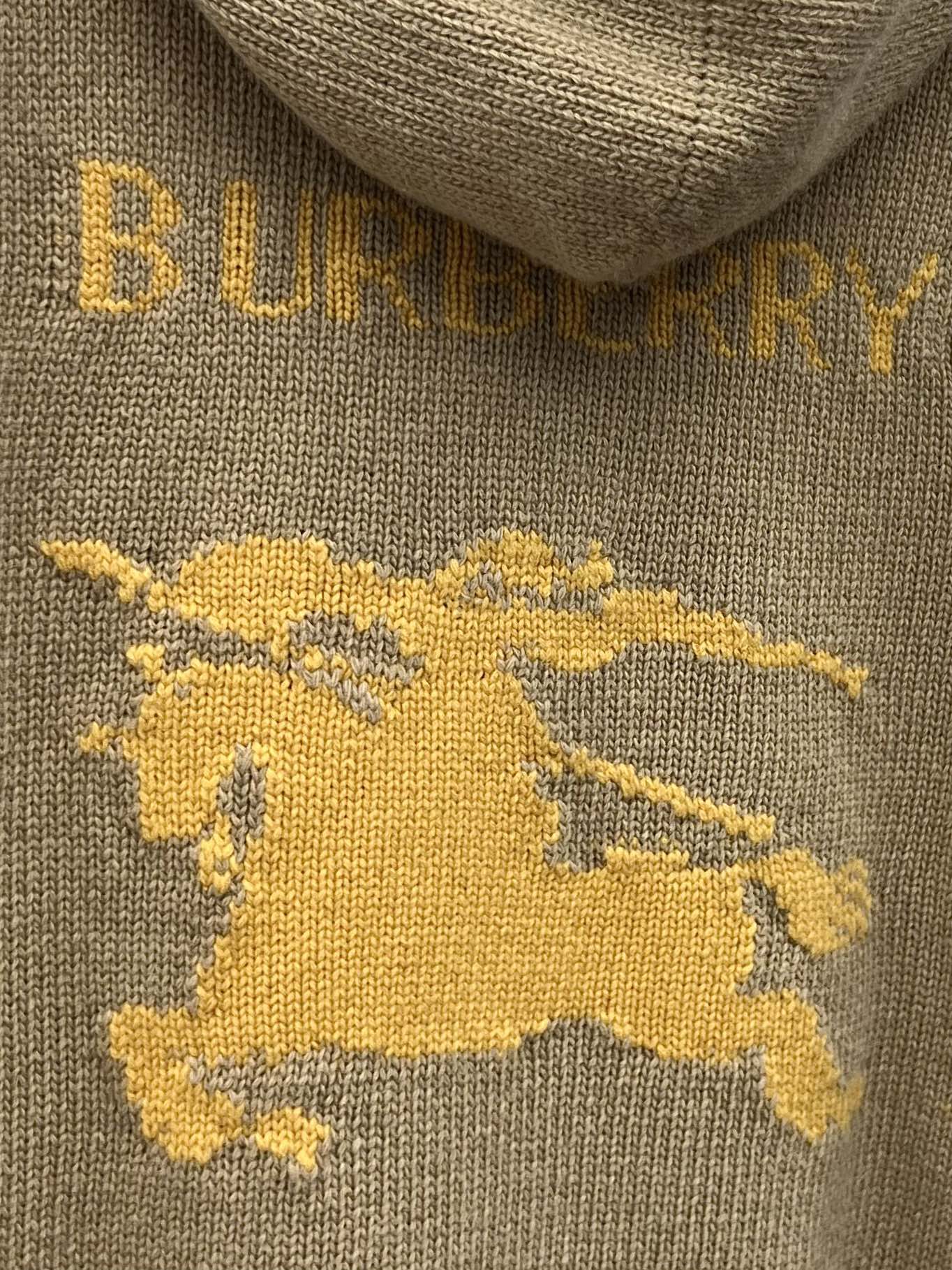 Burberry 25 Zipper-Up Hooded Knit Cardigan Beige Wool Cashmere