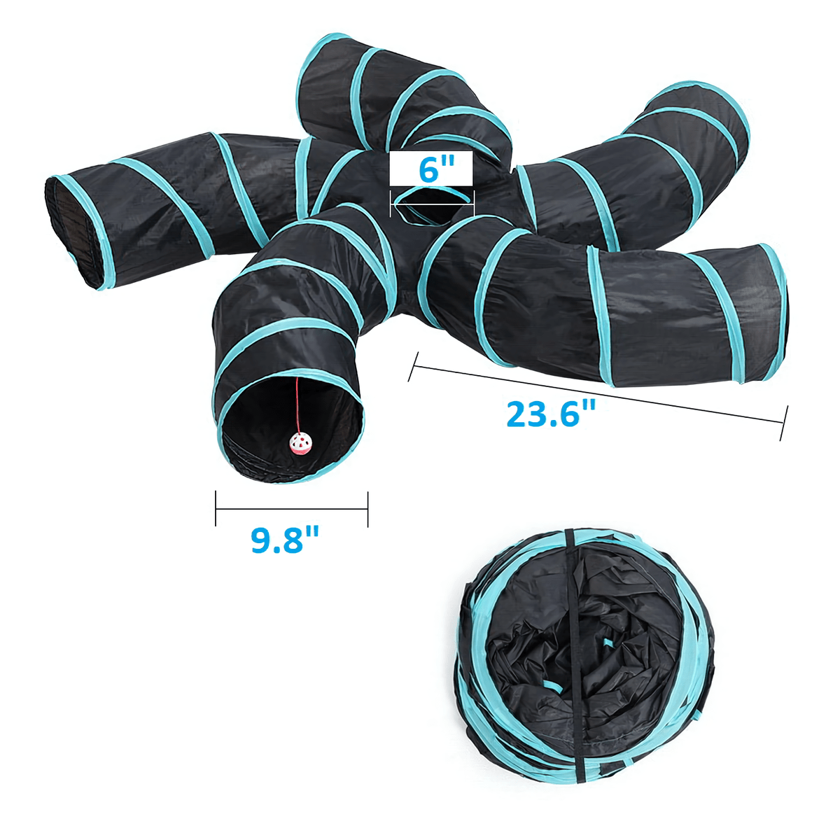 Stimulez l'instinct de curiosité de votre chat avec les quatre entrées du tunnel. Votre chat pourra choisir par où commencer son expédition et s'amuser à explorer les différents chemins offerts par les branches du tunnel.