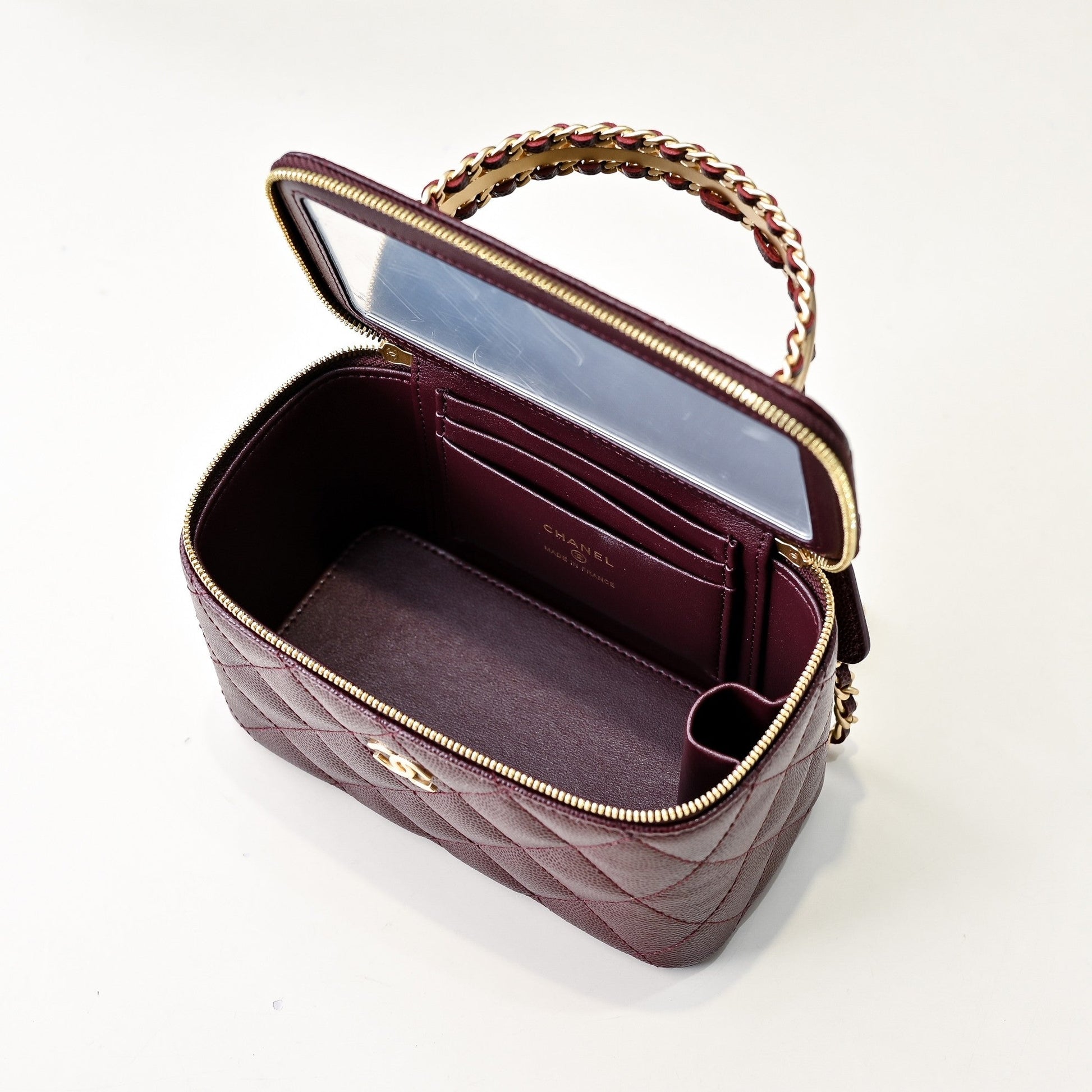 CC 24A Vanity Top Handle 16cm Burgundy Grained Calfskin Gold Hardware