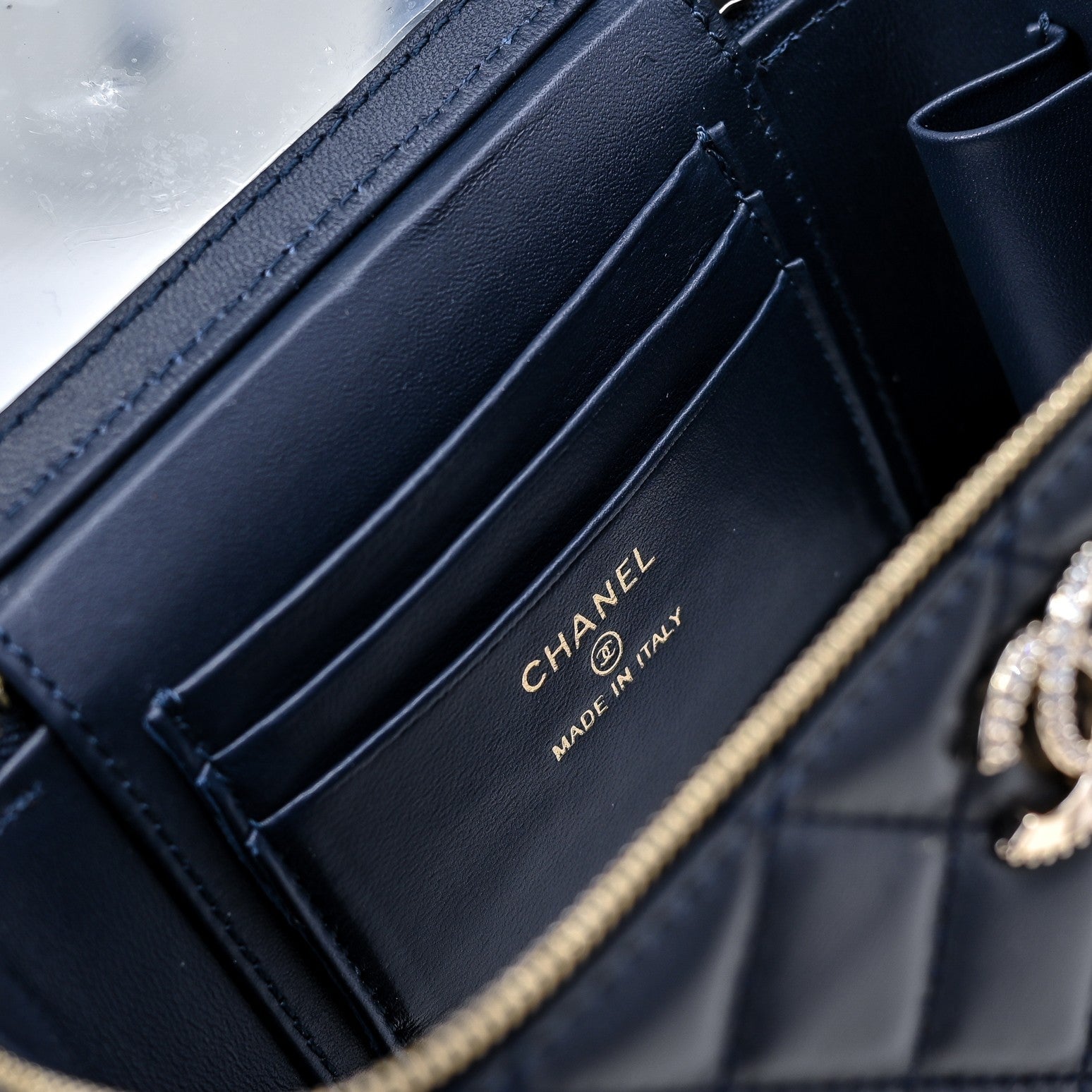 CC 24K Vanity Top Handle 17cm Blue Lambskin Silver Hardware