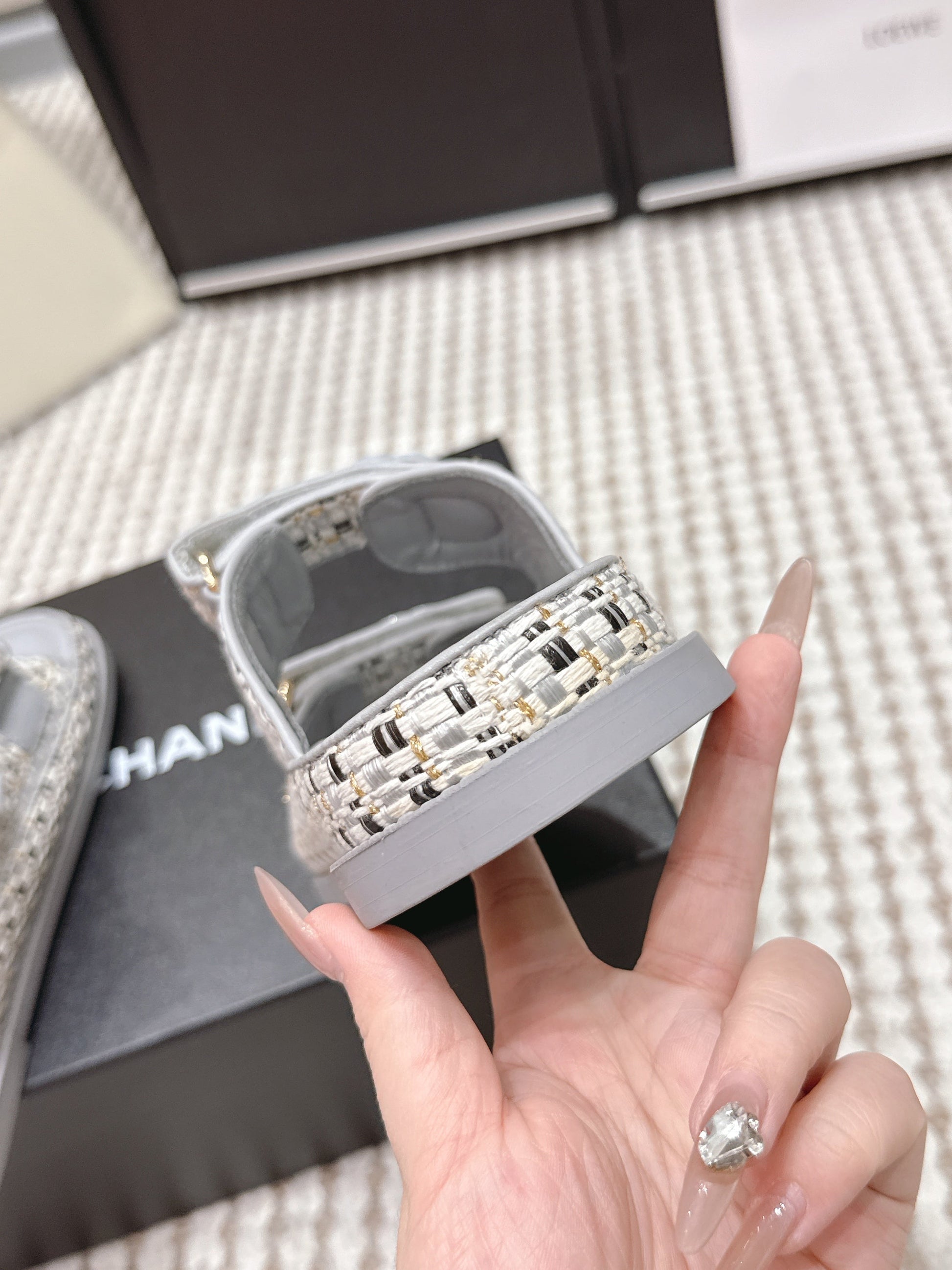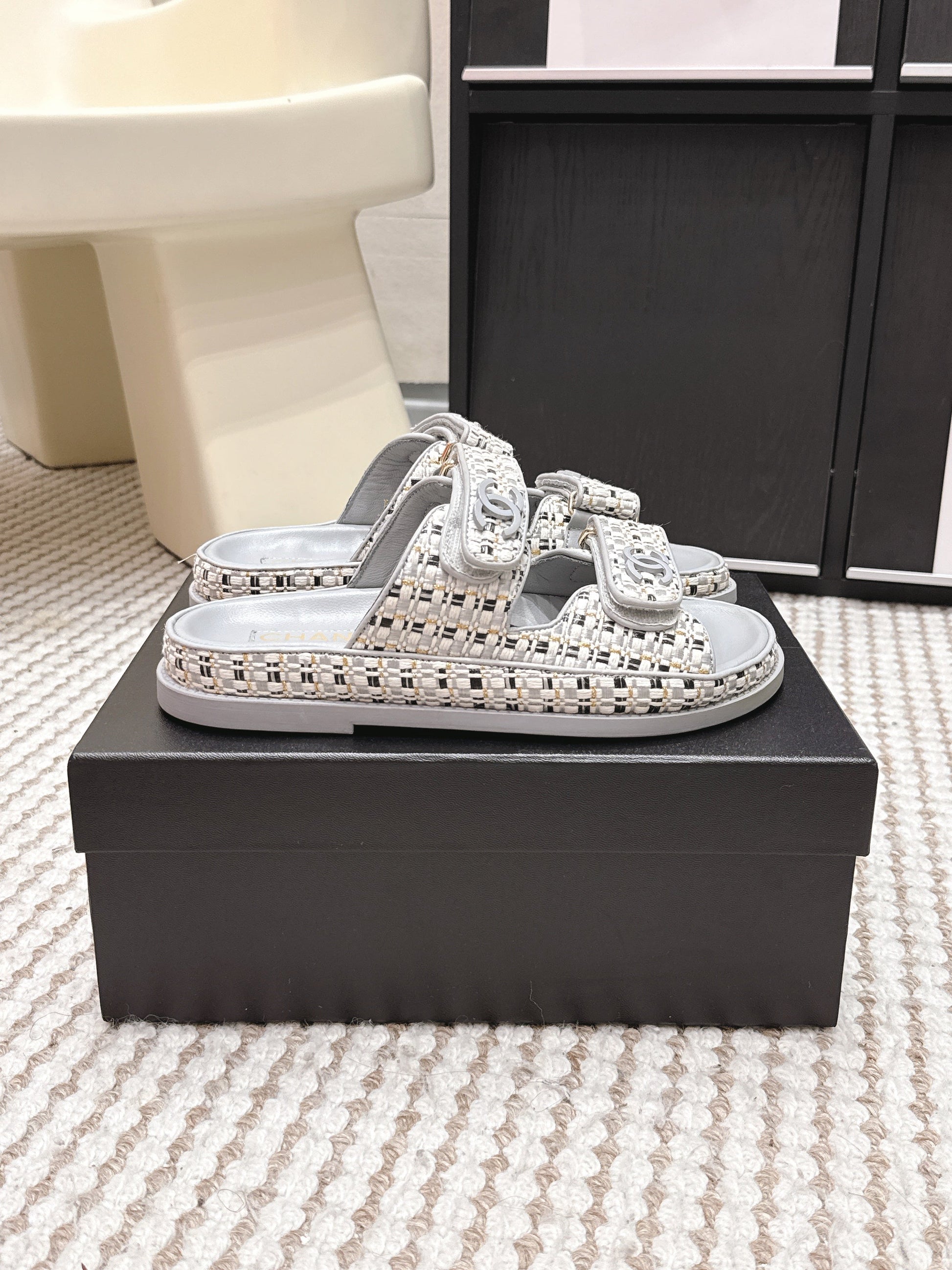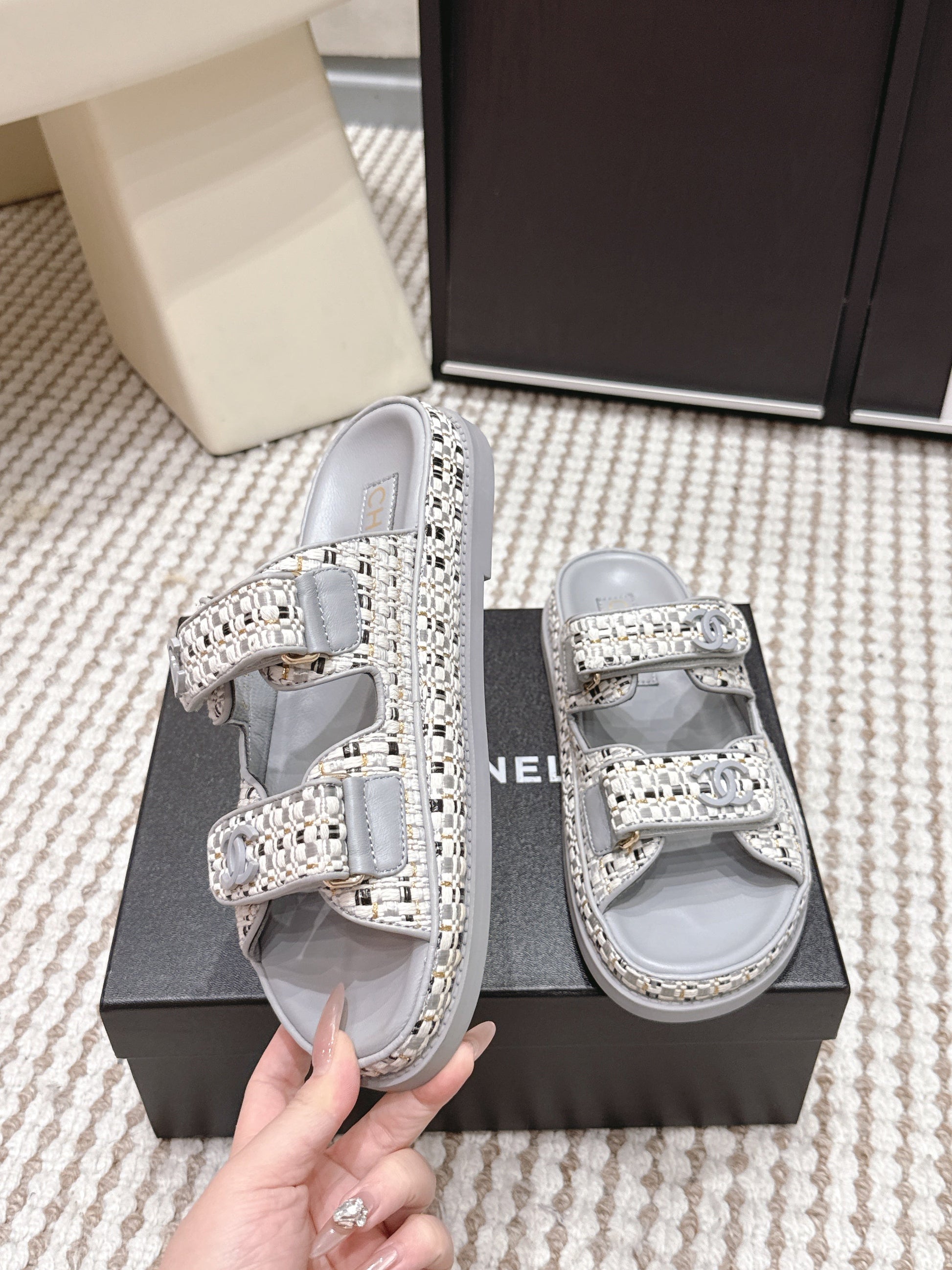 CC 26s Sandals Gray Beige Leather Raffia 632394