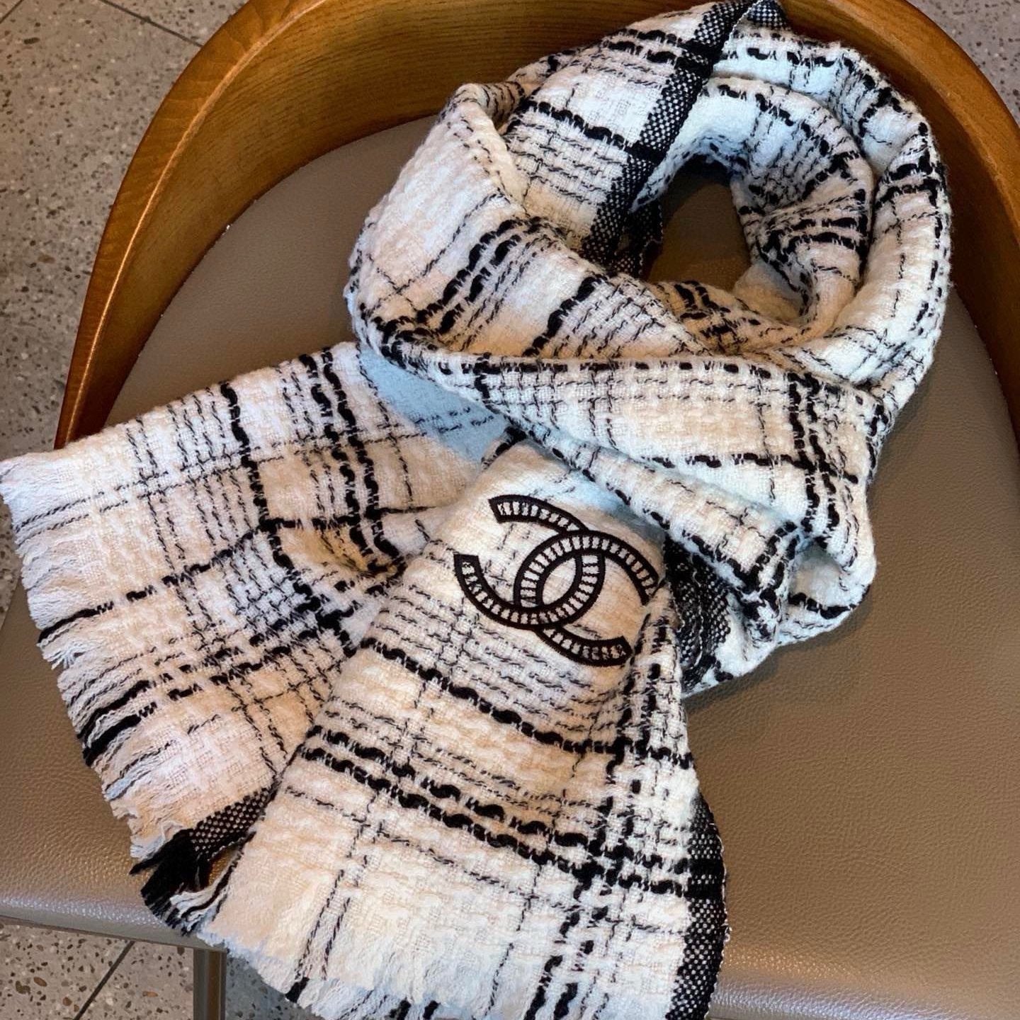 CC Scarf 200 CM In White With Black Stripes Cashmere 415341
